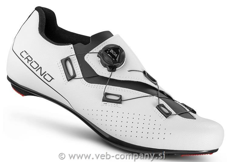 Popolnoma prenovljen in cenovno dostopen čevelj z najlonskim podplatom ojačenim s karbonskimi vlakni. Zapenjanje z enojnim Boa sistemom prinaša novo raven praktičnosti, večtočkovnost sistema pa omogoča odlično prileganje kolesarjevemu stopalu. Od Cronovih najdražjih modelov povzema lasersko izdelane prezračevalne luknje in pa eleganten dizajn. Crono CR3 je opremljen tudi z vrhunskimi funkcijami, kot so prekrivajoče se zapiranje in notranja podloga v peti, ki ne drsi, zaradi česar je CR3 popoln čevelj za najzahtevnejše amaterje.
